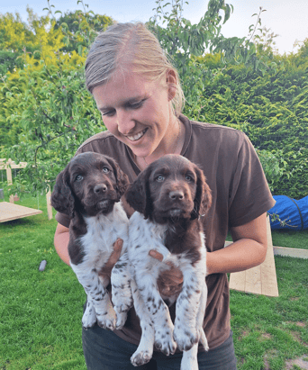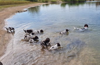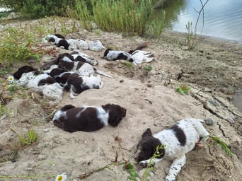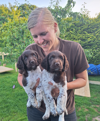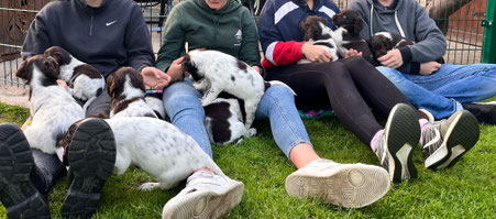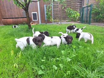Unsere Welpen werden bestmöglich auf ihr späteres Leben als Jagdhund und Familienmitglied vorbereitet. Die ersten Lebenswochen der Welpen sind eine der wichtigsten Phasen in ihrem Leben, deshalb nutzen wir sie, an die Entwicklung angepasst, intensiv zur richtigen Prägung und Sozialisierung!