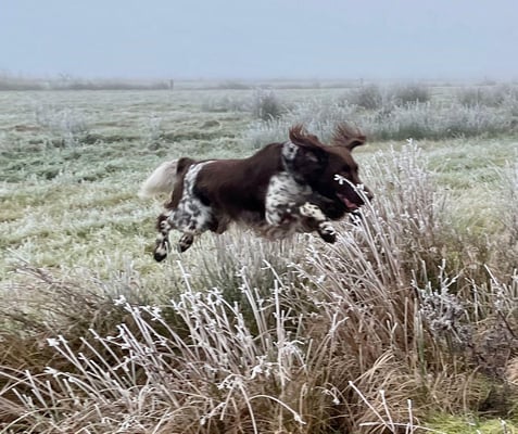 Eyck selbst hat seine Prüfungen bis zur VGP mit sehr guten Ergebnissen absolviert. Darüber hinaus ist er spurlaut und hat den Härtenachweis. Beides waren Grundbedingungen bei der Suche nach einem passenden Deckrüden. Auf der Zuchtschau wurde er in Form- und Haarwert mit vorzüglich beurteilt und sein Wesen als ruhig und sicher beschrieben. Letzteres ist ebenfalls ein ausschlaggebendes Anpaarungskriterium. Als Vererber hat sich Eyck bisher überdurchschnittlich gut bewährt, seine über 70 Nachkommen im In- und Ausland haben sehr gute Resultate bezüglich ihrer jagdlichen Leistungen erbracht, haben kaum Erbfehler (z. B. HD und Ureter, Zahnfehler ) und ein stimmiges Wesen.