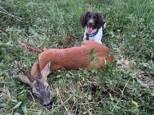 Gisa ist sowohl auf Niederwild als auch auf Schalenwild eingejagt und konnte sich bereits auf Streife, Treibjagd und Entenstrich jagdlich bewähren. Sie ist beim Ansitz auf Schalenwild ein ruhiger und gehorsamer Begleiter und immer bereit, einen nach dem Schuss sicher zum Stück zu führen.