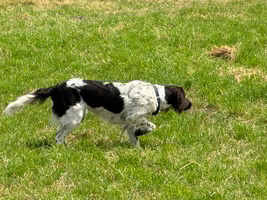 Dieses Video zeigt Gisa im Alter von vier Monaten beim Vorstehen an einem Hasen.