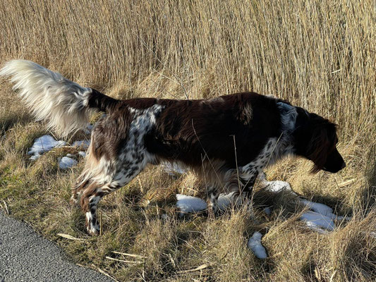 Die Anpaarung mit unserer Zuchthündin „Elverdams Keya“ bringt wiederum die Linien „Tecklenburger Land“, „Kiefernwalde“ und „Wolfskammer“